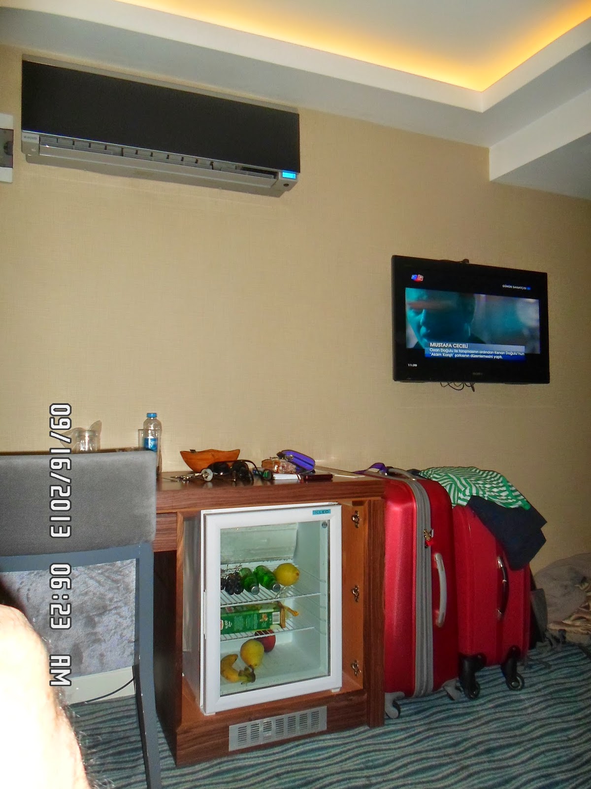 Por se tratar de um hotel islâmico, não são servidas bebidas alcoólicas nem alimentos haram. Por isso não tem cerveja, raki, vinho no frigobar nem no menu de bebidas. Você precisa comprar em mercadinho do bairro e colocar no frigobar.
